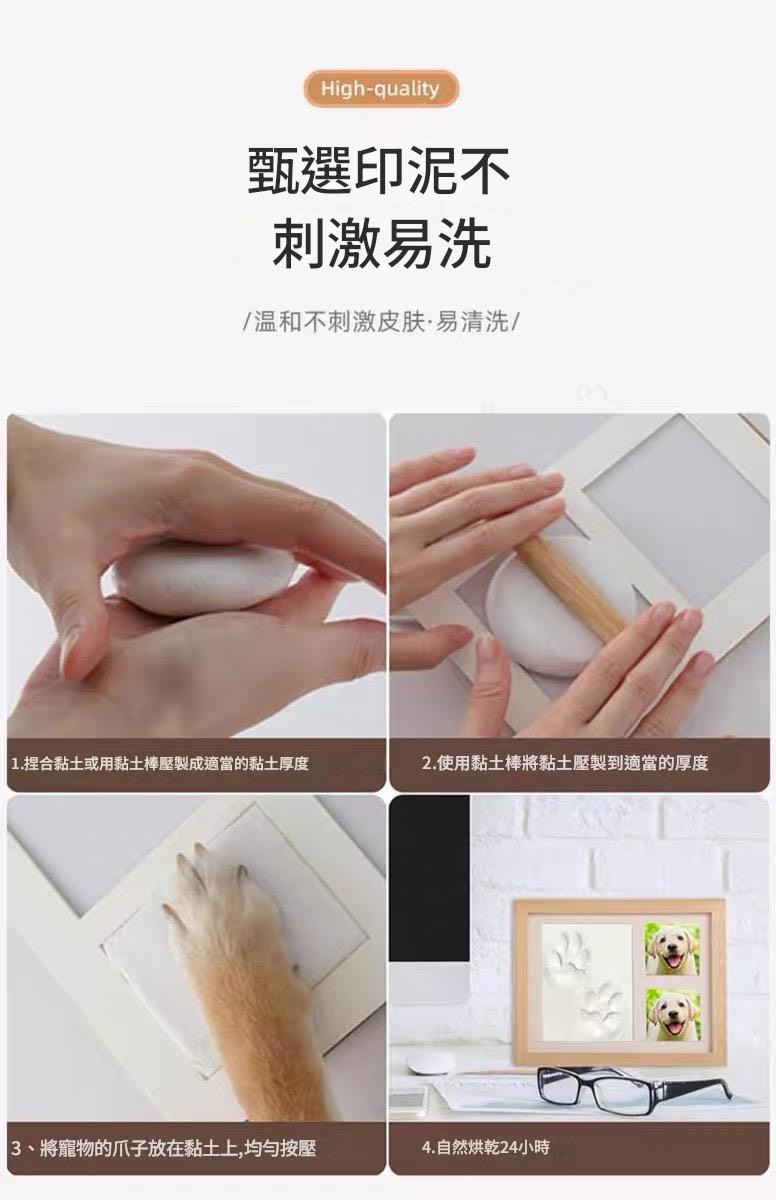 【毛孩腳印紀念框】讓你把牠的第一步、每一步,深深記錄下來。附有柔軟安全的黏土模、雙格相框設計,可以同時放上牠的照片與腳印,打造專屬於你們的溫暖記憶。適合貓咪、狗狗、甚至小型寵物使用,是一份送給自己、也送給毛孩的感動禮物。